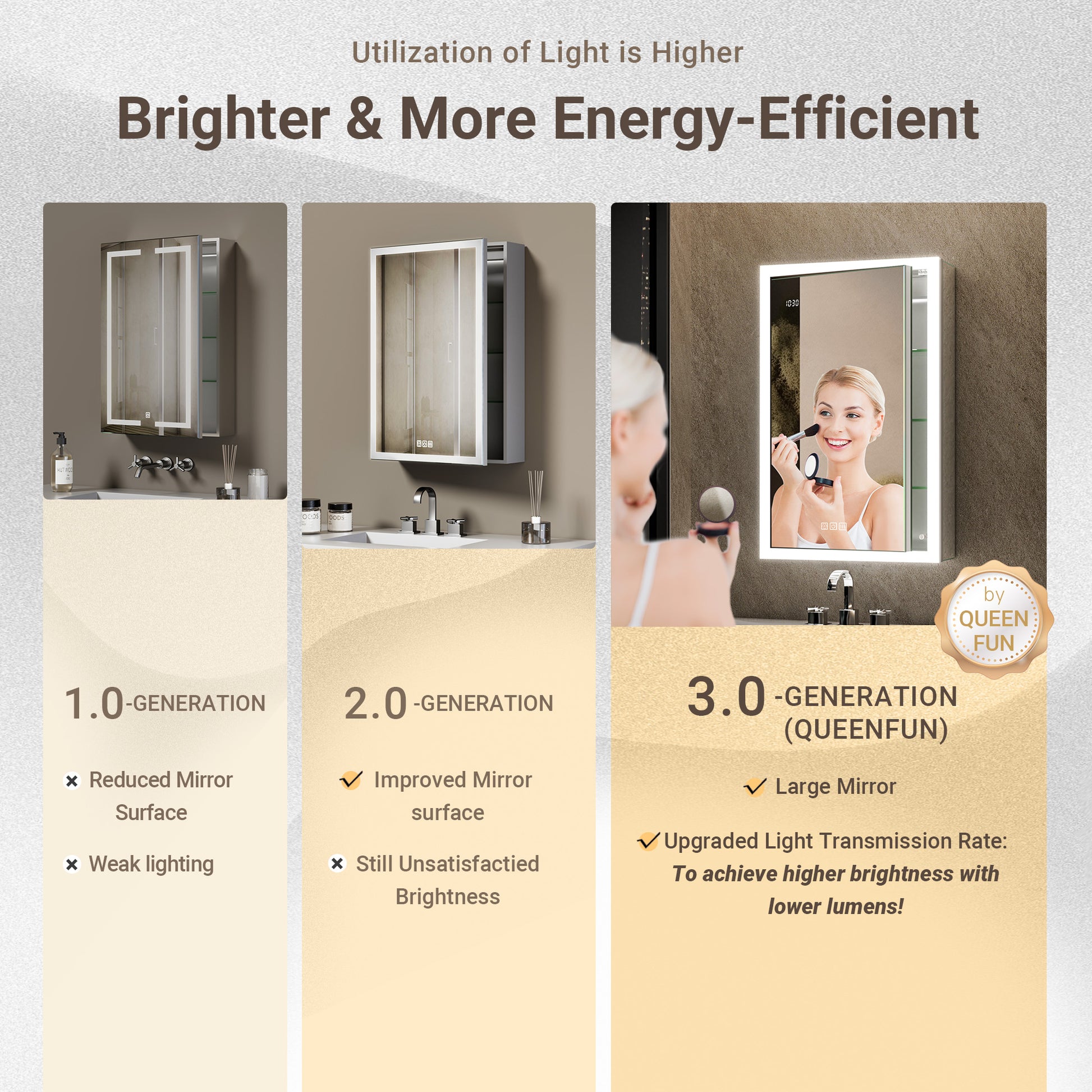 Crafted from anodized aluminum with copper-free HD mirror, motion-sensor interior light, soft-close hinge, and integrated USB + outlet. Surface or recessed installation available. Refined storage with modern precision.