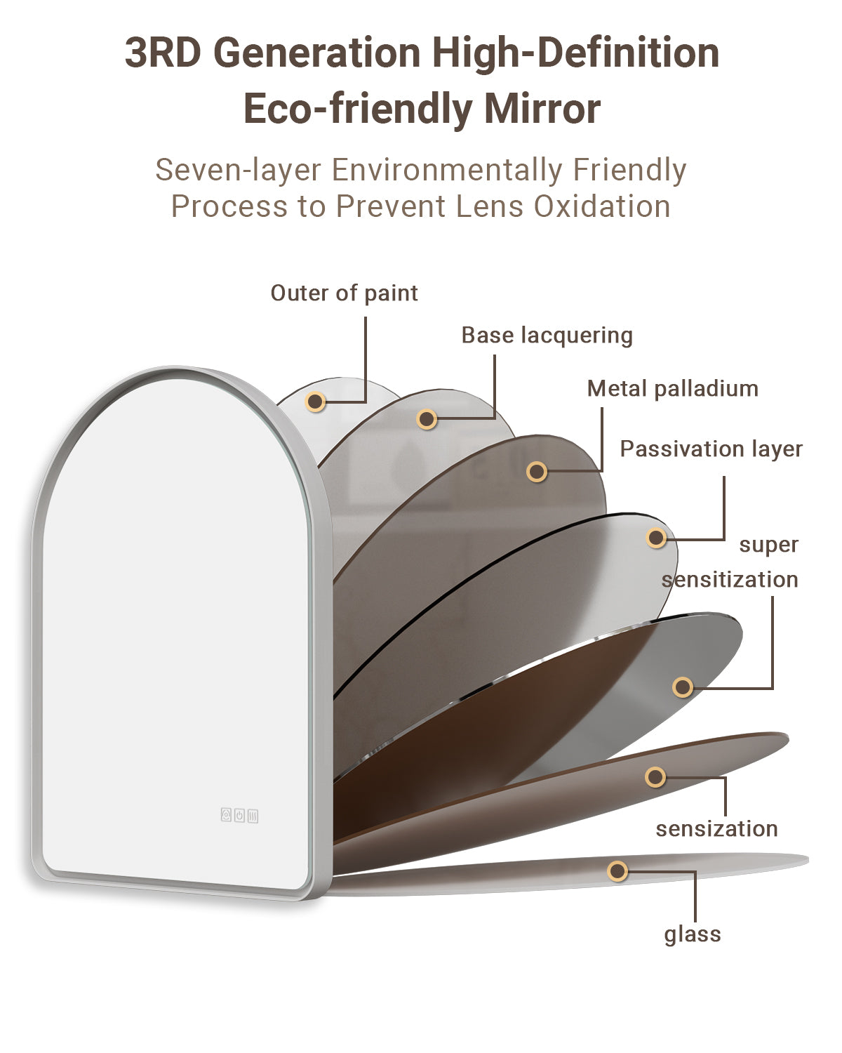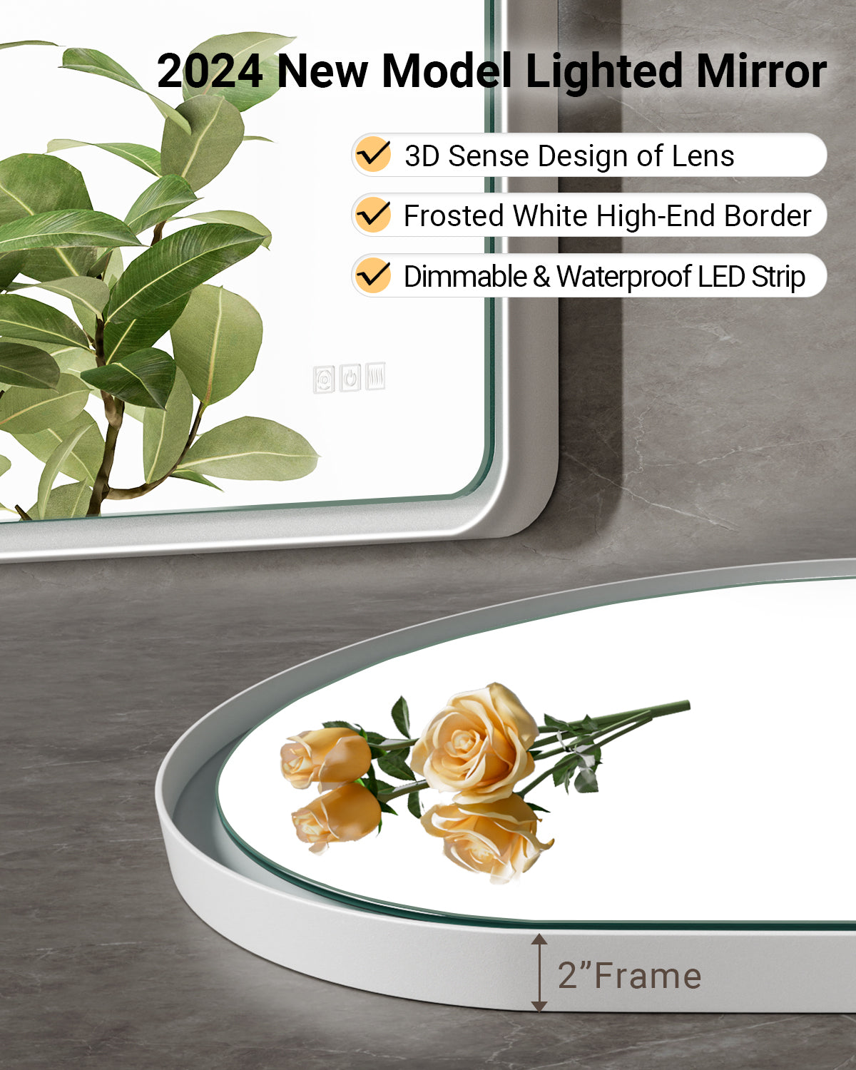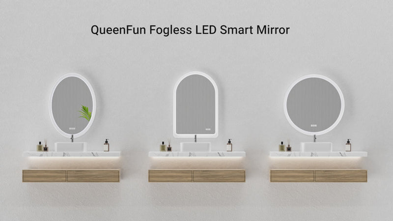 Architectural lines meet modern illumination. Featuring stepless dimming (3000K–6000K), memory function, and rapid anti-fog clarity, this copper-free HD mirror delivers crisp reflection and refined ambiance.