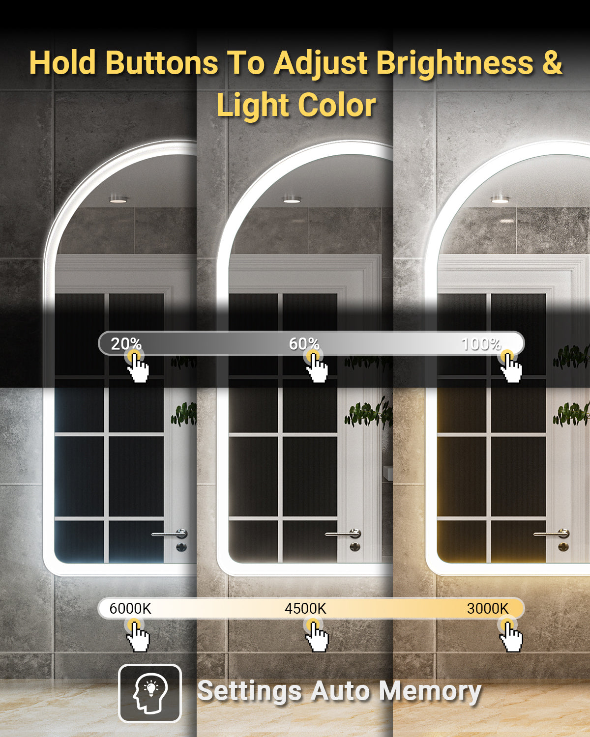 Absolutely. The mirror remembers your last brightness and color temperature settings. When you turn it back on (via the touch sensor or a wall switch), it will automatically return to your preferred ambiance.