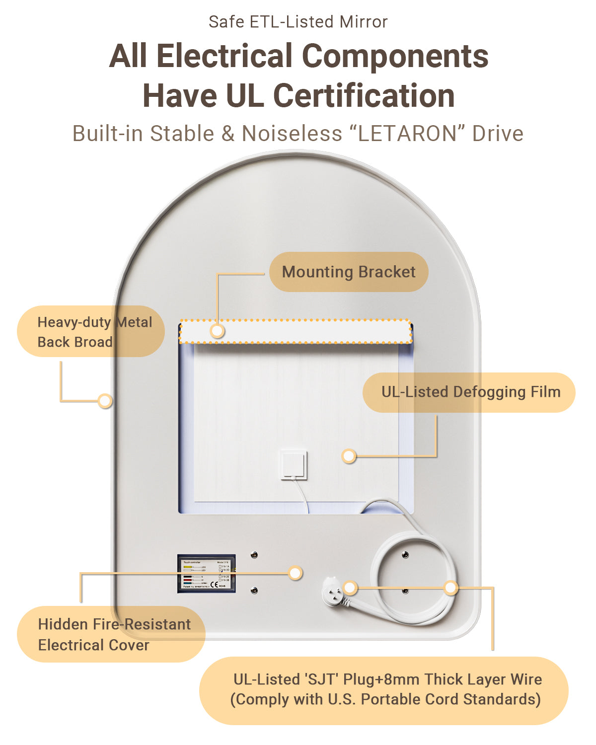 Our mirror includes a built-in heating pad behind the glass. We recommend turning on the anti-fog function 3–5 minutes before showering. For safety and energy efficiency, the defogger will automatically shut off after 60 minutes of continuous use.