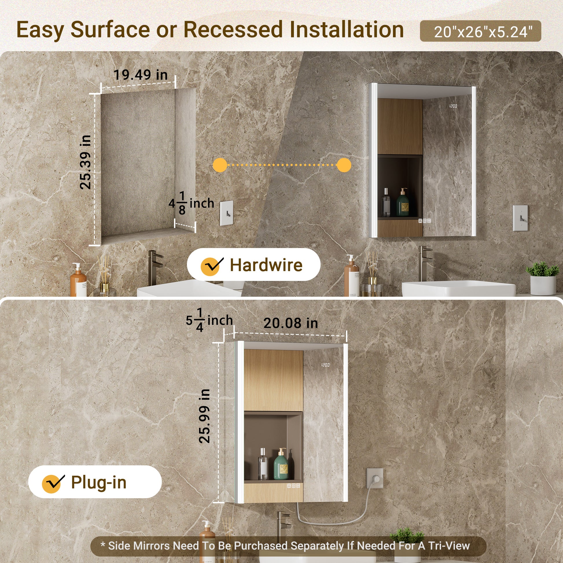 Auralux Core 20x26'' Front-Lit LED Medicine Cabinet Mirror Soft-Close Right Hinge