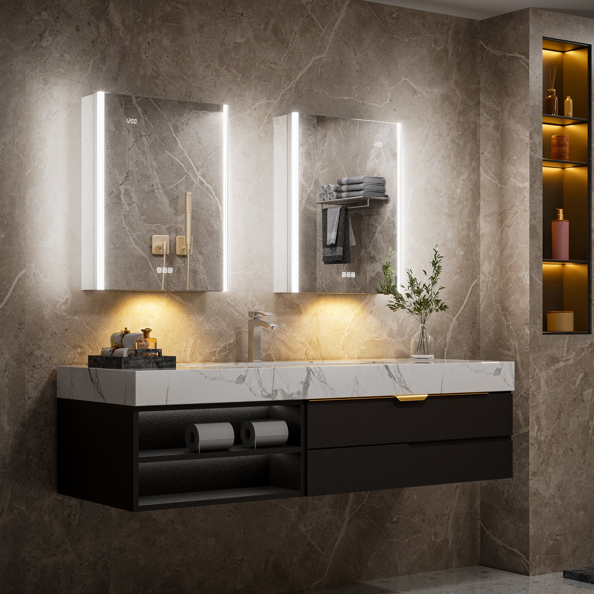 - For double vanities, two separate cabinets (one over each sink) often look more proportional.