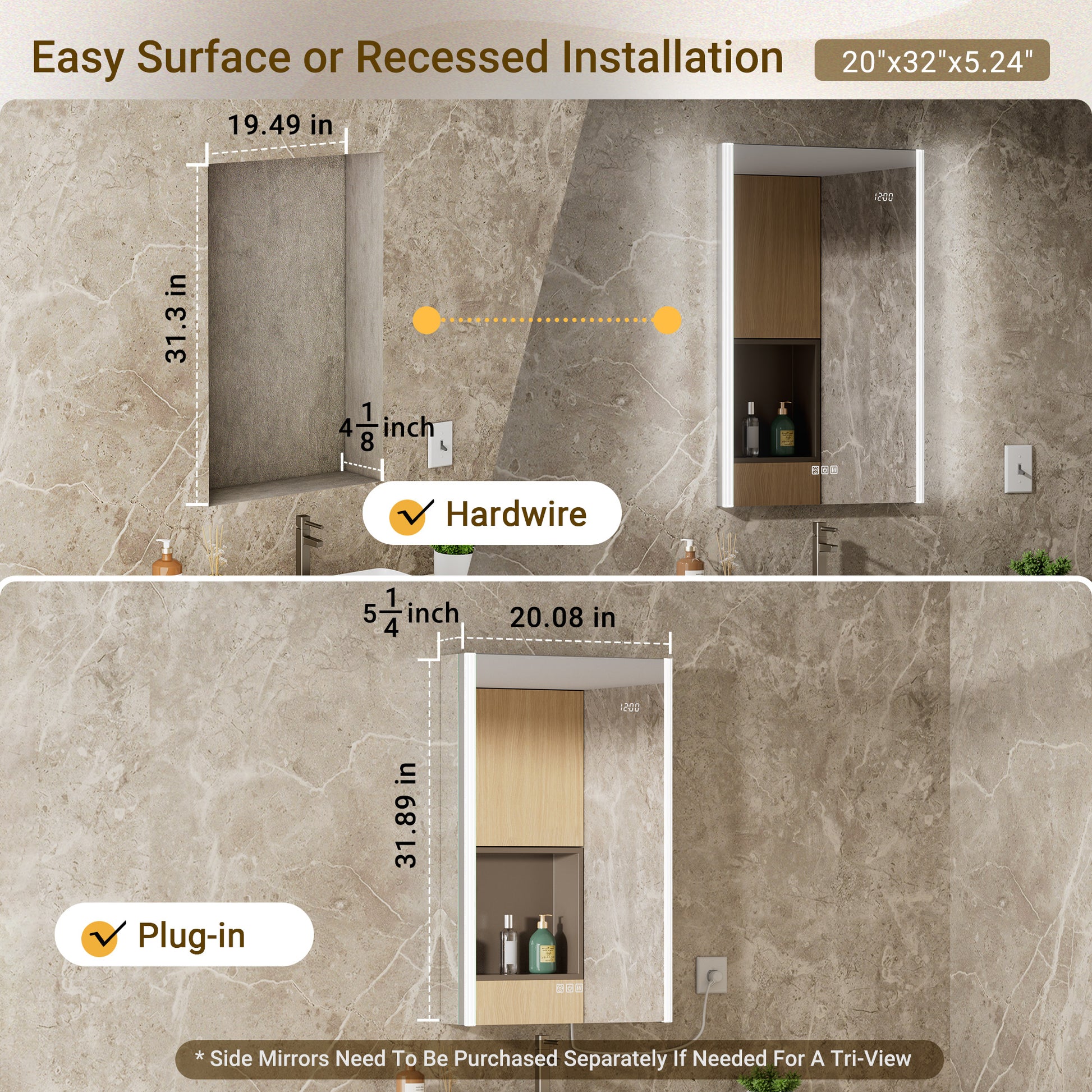 Absolutely. The series supports both Surface Mount and Recessed Mount. For a recessed installation, the side mirrors are not needed, resulting in a sleek, flush look with your wall.