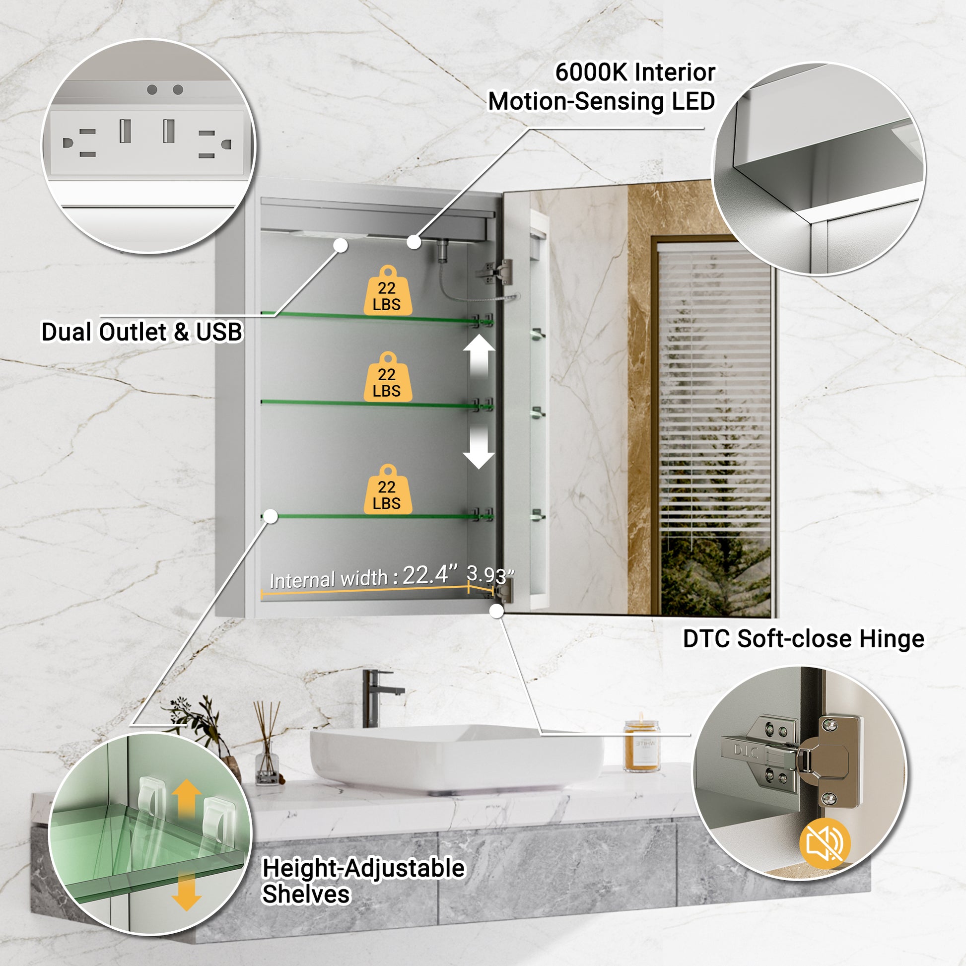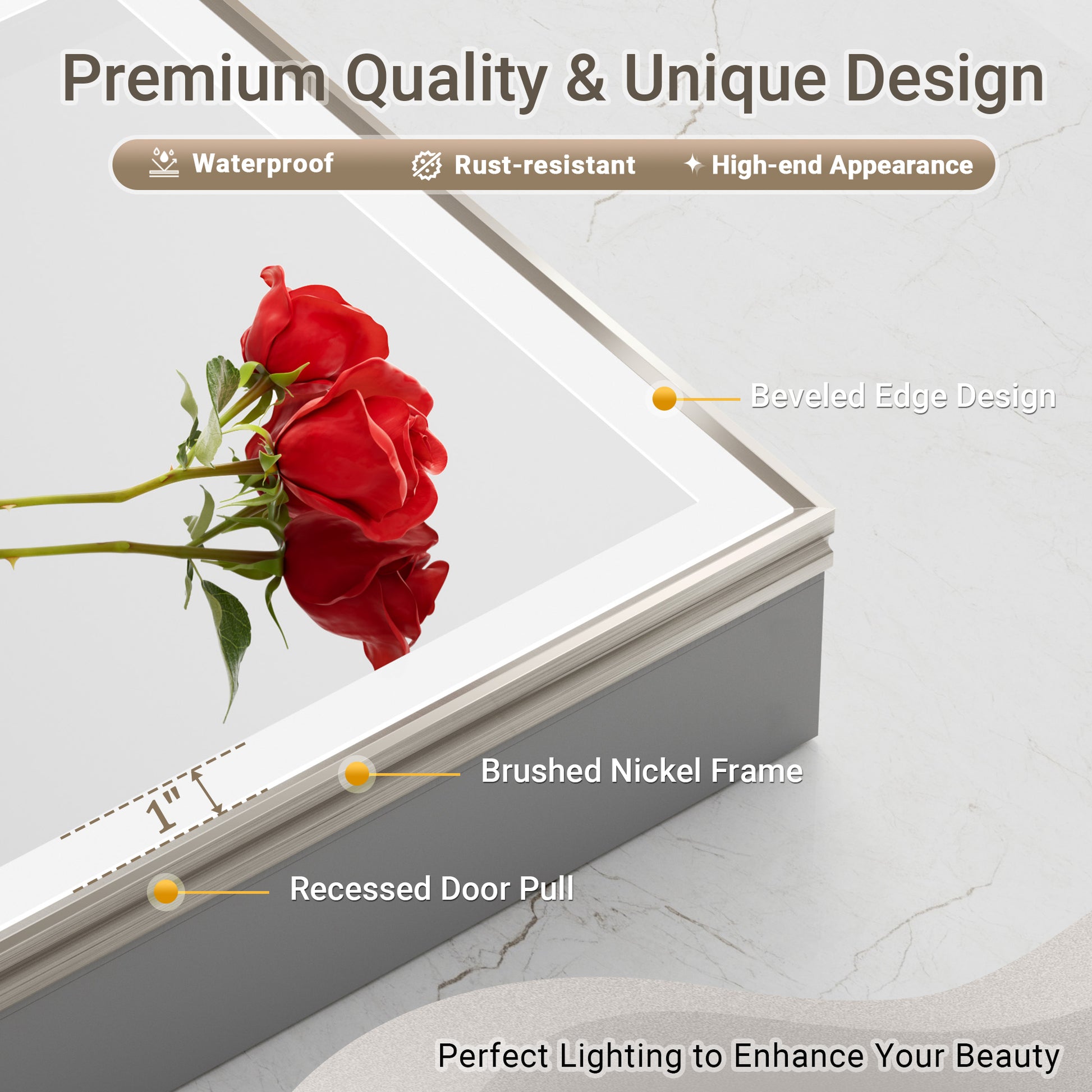 A premium beveled lighted medicine cabinet designed for modern bathrooms — combining edge-lit innovation, intelligent lighting control, durable craftsmanship, and flexible installation in one refined design.